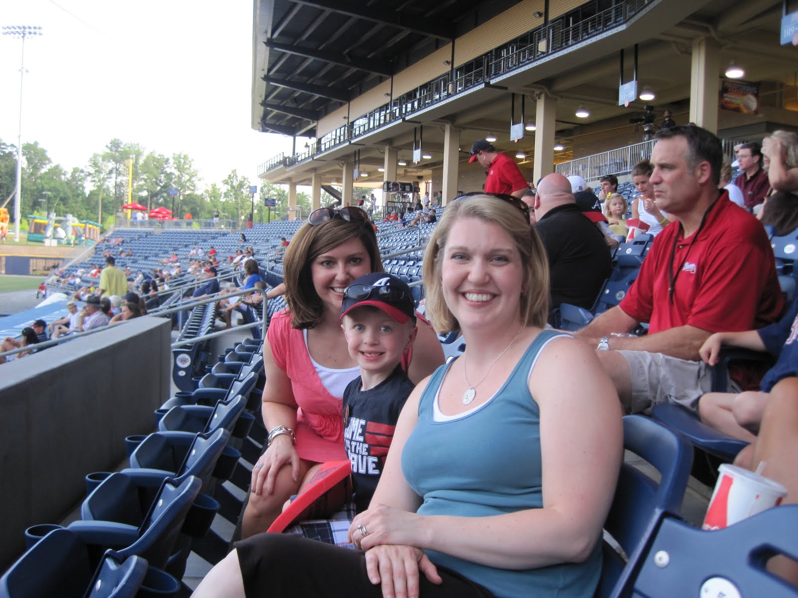 Luke's first ballgame was so much fun. I will never forget the look on his face when he saw the field for the first time. He was so impressed. He looked up at me and said, "Mommy, it is so much bigger than I thought it would be." Papa, Aunt Holly, Luke and I had hotdogs and Coke. We cheered, we danced to the music between innings, and had the best time. Can't wait to go again! Go Braves!!!!